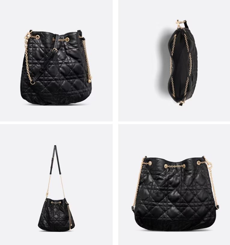 2023 여름 시즌 새롭게 선보이는 타임리스 스타일의 우아한 Dior Ammi 백입니다. 매크로까나쥬 스티칭이 돋보이는 블랙 양가죽으로 제작되었으며, 조일 수 있는 체인 클로저가 실용적인 터치를 더합니다. CD 이니셜로 장식된 체인 스트랩에 가죽 인서트를 더해 크로스백으로 편안하게 착용할 수 있습니다.
