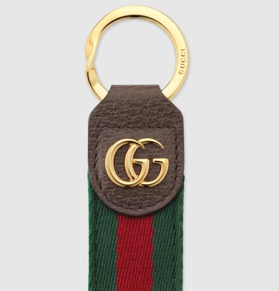 하우스의 상징인 더블 G 로고가 인상적인 키 체인. 구찌 하우스 승마 전통에서 영감을 받은 그린과 레드의 클래식한 하우스 웹(Web) 스타일 패션소품.