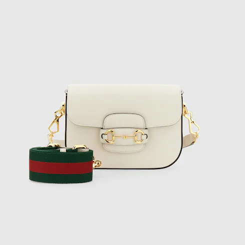 미니 버전 구찌 홀스빗 1955. 빈티지에서 영감을 얻은 라인에 하이브리드 감성을 더함. 두 가지 숄더 스트랩을 이용해 다양한 스타일링이 가능한 화이트 레더 미니백. 토널 레더 스트랩으로 절제된 우아함을 연출하거나 레드/그린 웹(Web)으로 강렬한 로고 감성을 부여할 수 있는 아이템.